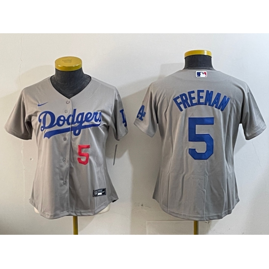 Women's Los Angeles Dodgers #5 Freddie Freeman Number Grey Cool Base Stitched Jersey