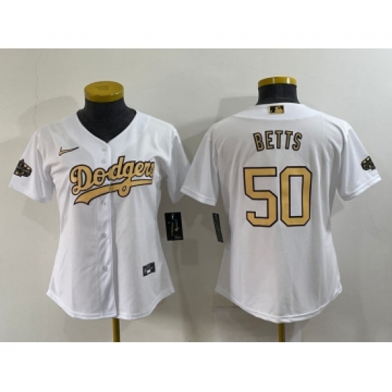 Women's Los Angeles Dodgers #50 Mookie Betts White 2022 All Star Stitched Cool Base Nike Jersey