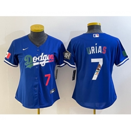 Women's Los Angeles Dodgers #7 Julio Urias Blue 2020 World Series Cool Base Nike Jersey2