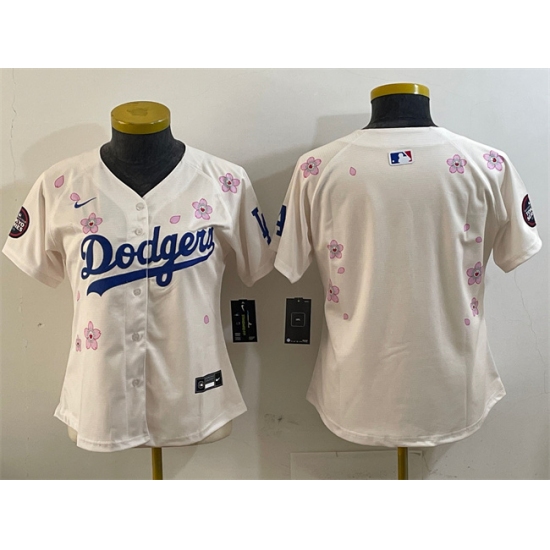 Women's Los Angeles Dodgers Blank Cream 2025 Tokyo Series Limited Stitched Baseball Jersey