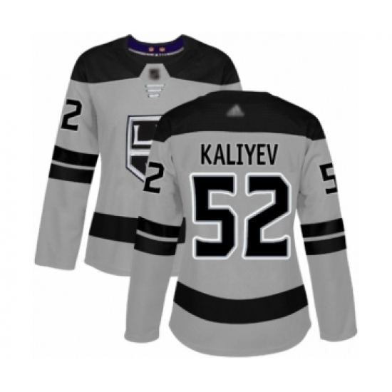 >Women's Los Angeles Kings #52 Arthur Kaliyev Authentic Gray Alternate Hockey Jersey