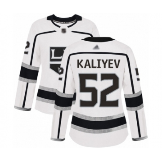 >Women's Los Angeles Kings #52 Arthur Kaliyev Authentic White Away Hockey Jersey