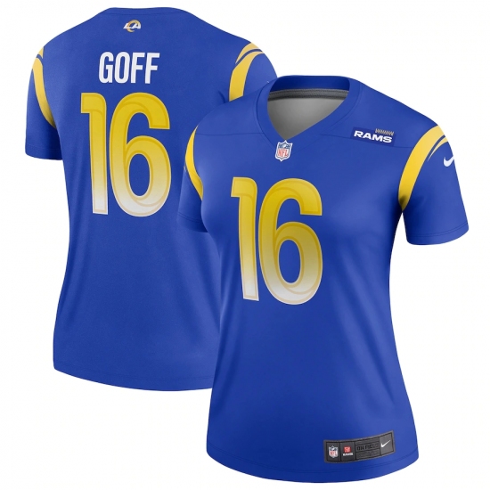 >Women's Los Angeles Rams #16 Jared Goff Blue Nike Royal Game Jersey.webp
