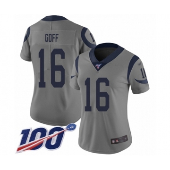 Women's Los Angeles Rams #16 Jared Goff Limited Gray Inverted Legend 100th Season Football Jersey
