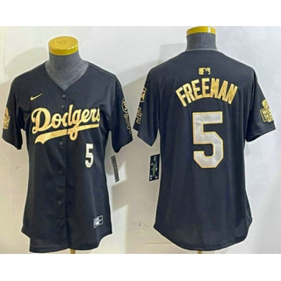 >Women's Los Men's Los Angeles Dodgers #5 Freddie Freeman Black Gold 2024 World Series 34 Stitched Cool Base Jersey