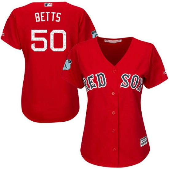 Home>MLB>Boston Red Sox>Mookie Betts>Women's Majestic Boston Red Sox #50 Mookie Betts Authentic Scarlet 2017 Spring Training Cool Base MLB Jersey