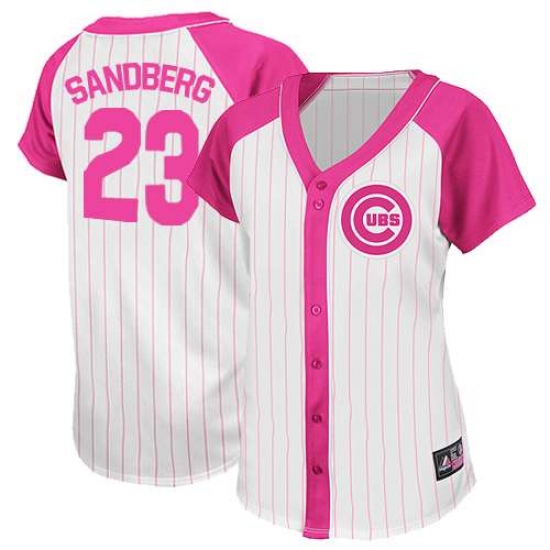 Women's Majestic Chicago Cubs #23 Ryne Sandberg Replica White/Pink Splash Fashion MLB Jersey