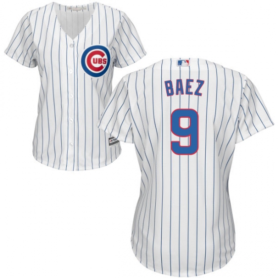Home>MLB>Chicago Cubs>Javier Baez>Women's Majestic Chicago Cubs #9 Javier Baez Authentic White Home Cool Base MLB Jersey