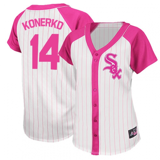 Home>MLB>Chicago White Sox>Paul Konerko>Women's Majestic Chicago White Sox #14 Paul Konerko Replica White/Pink Splash Fashion MLB Jersey