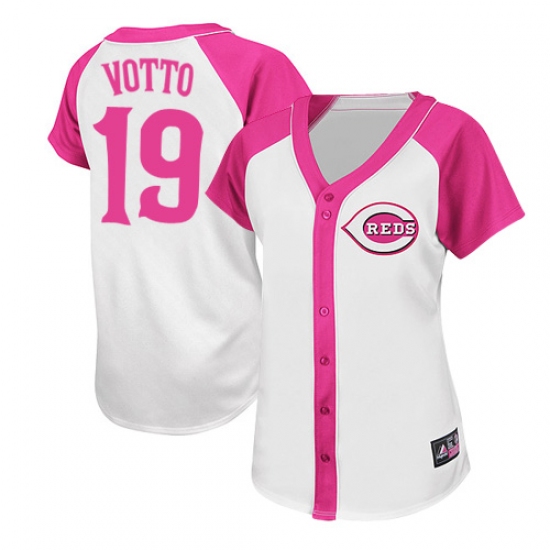Home>MLB>Cincinnati Reds>Joey Votto>Women's Majestic Cincinnati Reds #19 Joey Votto Authentic White/Pink Splash Fashion MLB Jersey