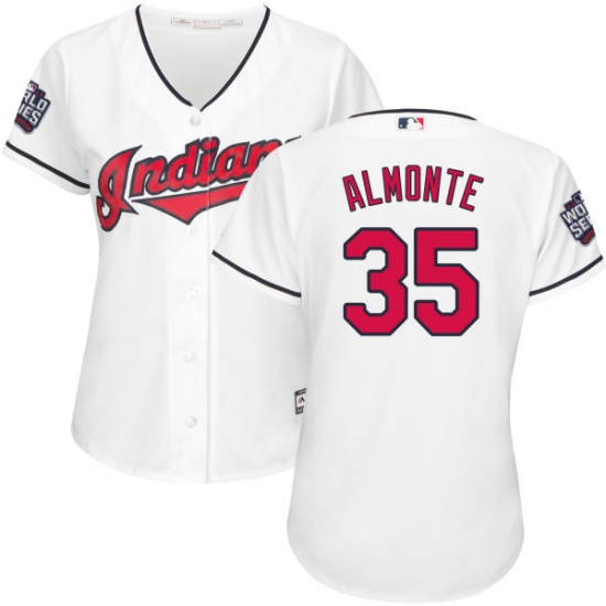 Home>MLB>Cleveland Indians>Abraham Almonte>Women's Majestic Cleveland Indians #35 Abraham Almonte Authentic White Home 2016 World Series Bound Cool Base MLB Jersey