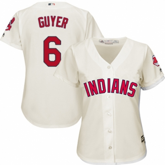 Women's Majestic Cleveland Indians #6 Brandon Guyer Replica Cream Alternate 2 Cool Base MLB Jersey