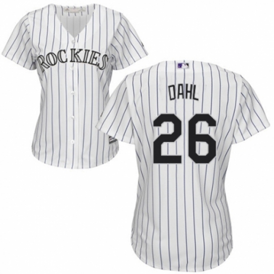 >Women's Majestic Colorado Rockies #26 David Dahl Replica White Home Cool Base MLB Jersey