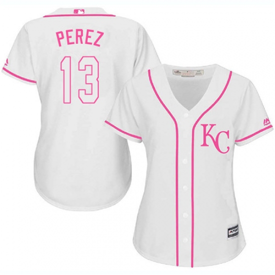 Home>MLB>Kansas City Royals>Salvador Perez>Women's Majestic Kansas City Royals #13 Salvador Perez Replica White Fashion Cool Base MLB Jersey