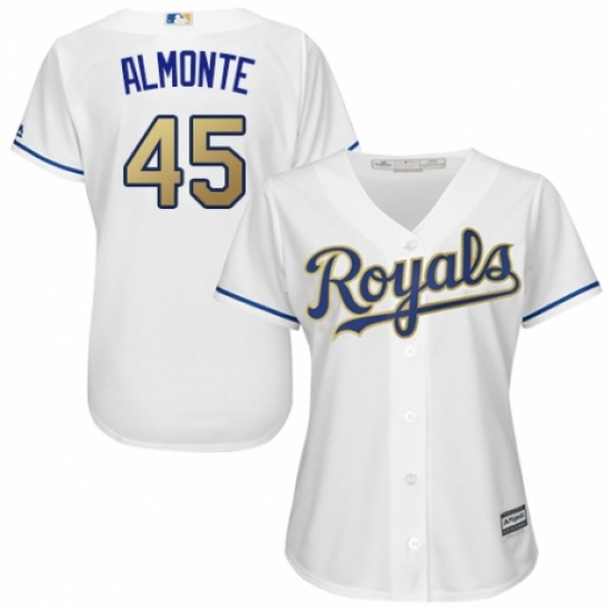 >Women's Majestic Kansas City Royals #45 Abraham Almonte Replica White Home Cool Base MLB Jersey