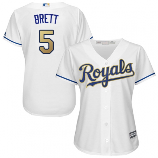 Women's Majestic Kansas City Royals #5 George Brett Replica White Home Cool Base MLB Jersey
