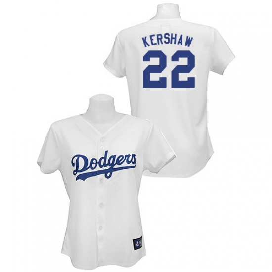 Women's Majestic Los Angeles Dodgers #22 Clayton Kershaw Replica White MLB Jersey