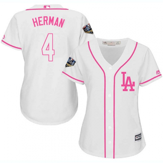 >Women's Majestic Los Angeles Dodgers #4 Babe Herman Authentic White Fashion Cool Base 2018 World Series MLB Jersey