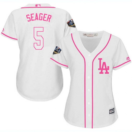 Women's Majestic Los Angeles Dodgers #5 Corey Seager Authentic White Fashion Cool Base 2018 World Series MLB Jersey