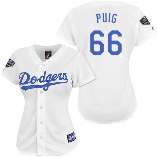Women's Majestic Los Angeles Dodgers #66 Yasiel Puig Authentic White 2018 World Series MLB Jersey