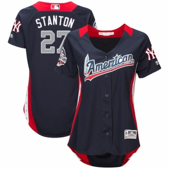 >Women's Majestic New York Yankees #27 Giancarlo Stanton Game Navy Blue American League 2018 MLB All-Star MLB Jersey