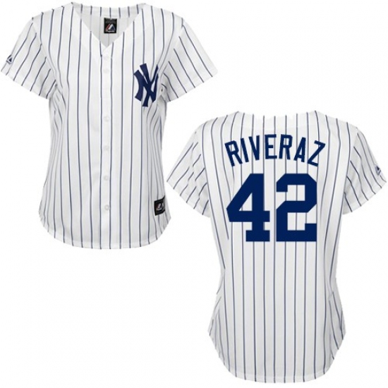 Home>MLB>New York Yankees>Mariano Rivera>Women's Majestic New York Yankees #42 Mariano Rivera Authentic White/Black Strip MLB Jersey