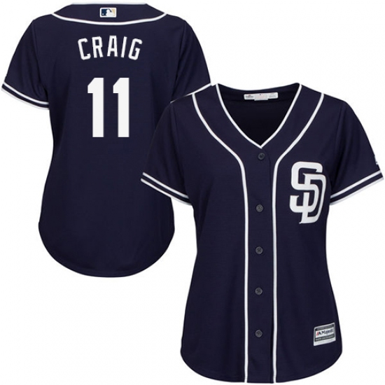 Home>MLB>San Diego Padres>Allen Craig>Women's Majestic San Diego Padres #11 Allen Craig Replica Navy Blue Alternate 1 Cool Base MLB Jersey