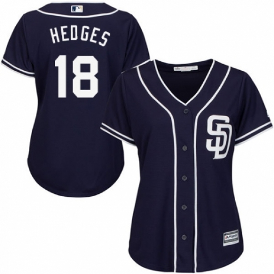 >Women's Majestic San Diego Padres #18 Austin Hedges Replica Navy Blue Alternate 1 Cool Base MLB Jersey