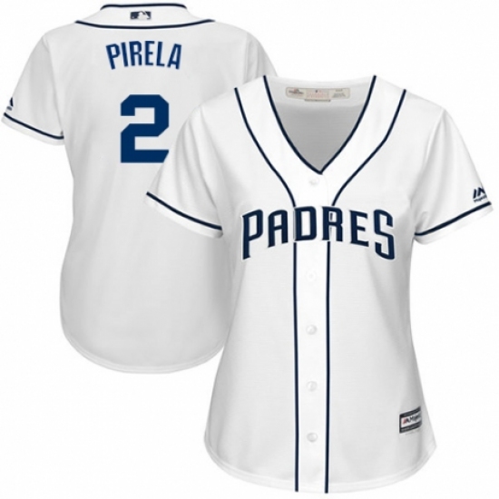 >Women's Majestic San Diego Padres #2 Jose Pirela Authentic White Home Cool Base MLB Jersey