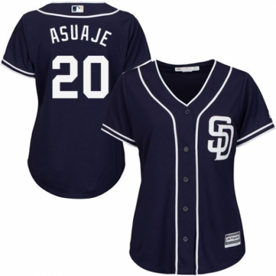 >Women's Majestic San Diego Padres #20 Carlos Asuaje Replica Navy Blue Alternate 1 Cool Base MLB Jersey