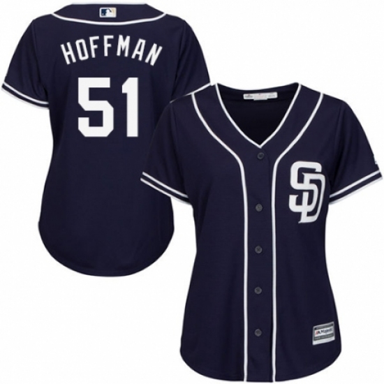 Women's Majestic San Diego Padres #51 Trevor Hoffman Replica Navy Blue Alternate 1 Cool Base MLB Jersey
