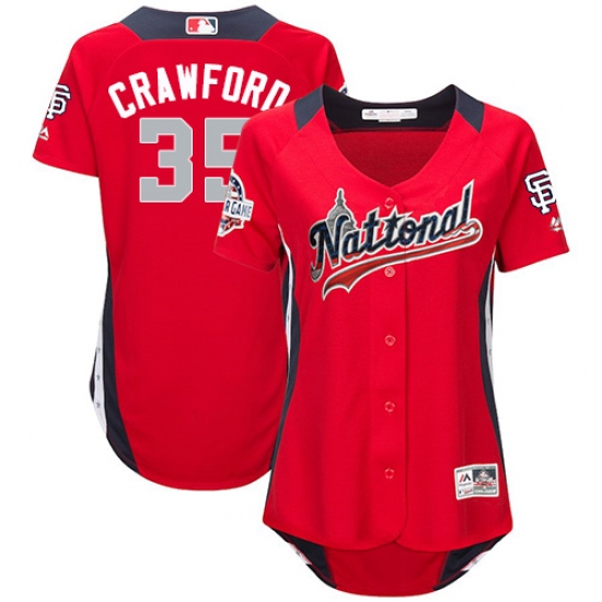 >Women's Majestic San Francisco Giants #35 Brandon Crawford Game Red National League 2018 MLB All-Star MLB Jersey