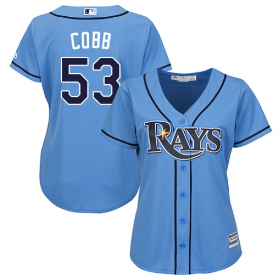 Home>MLB>Tampa Bay Rays>Alex Cobb>Women's Majestic Tampa Bay Rays #53 Alex Cobb Authentic Light Blue Alternate 2 Cool Base MLB Jersey