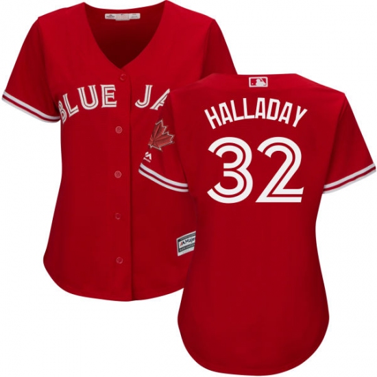 Home>MLB>Toronto Blue Jays>Roy Halladay>Women's Majestic Toronto Blue Jays #32 Roy Halladay Authentic Scarlet Alternate MLB Jersey