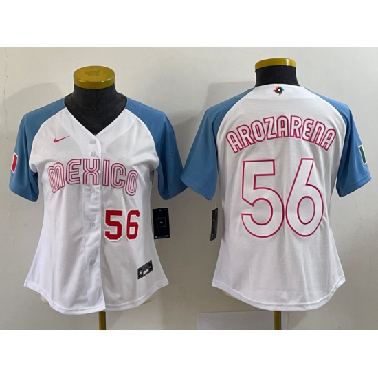 Women's Mexico Baseball #56 Randy Arozarena 2023 White Blue World Classic Stitched Jersey3