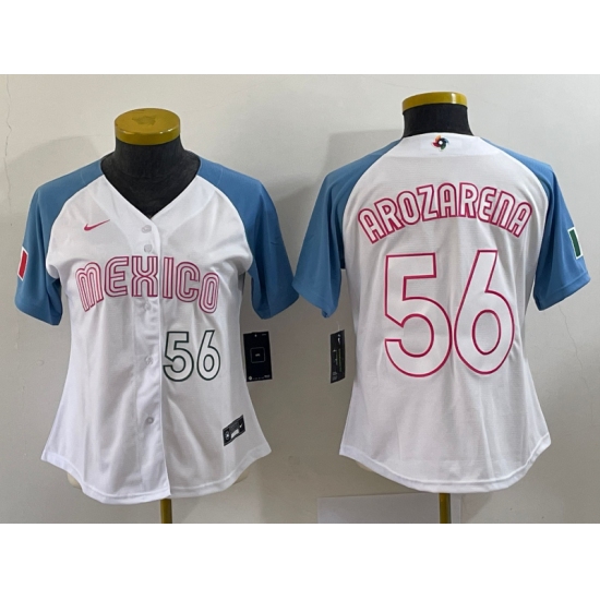 Women's Mexico Baseball #56 Randy Arozarena 2023 White Blue World Classic Stitched Jersey4