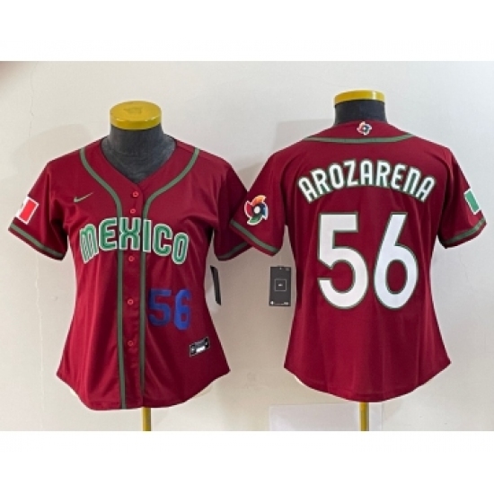 Women's Mexico Baseball #56 Randy Arozarena Number 2023 Red World Classic Stitched Jersey 4