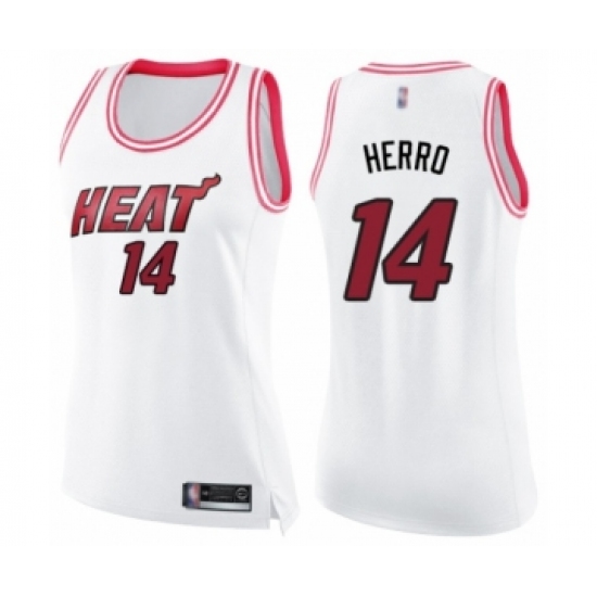 >Women's Miami Heat #14 Tyler Herro Swingman White Pink Fashion Basketball Jersey