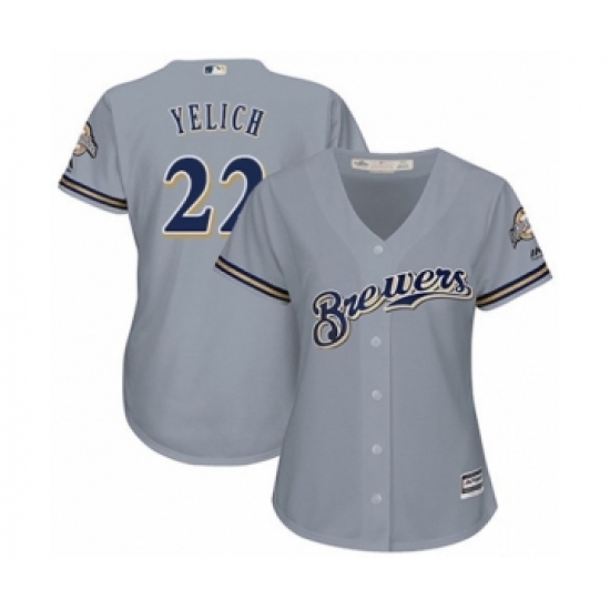 Women's Milwaukee Brewers #22 Christian Yelich Authentic Grey Road Cool Base Baseball Player Jersey
