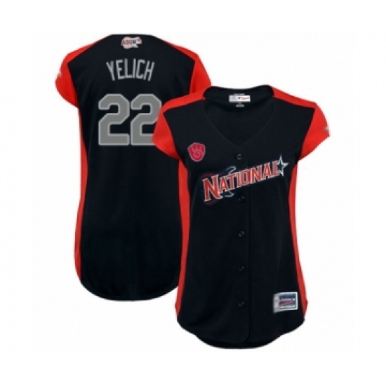 Women's Milwaukee Brewers #22 Christian Yelich Authentic Navy Blue National League 2019 Baseball All-Star Jersey