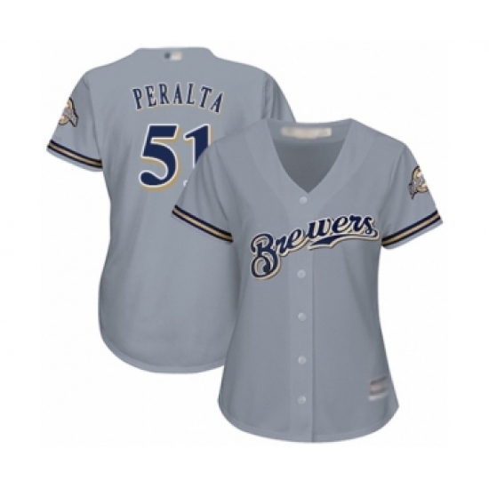 Women's Milwaukee Brewers #51 Freddy Peralta Authentic Grey Road Cool Base Baseball Player Jersey