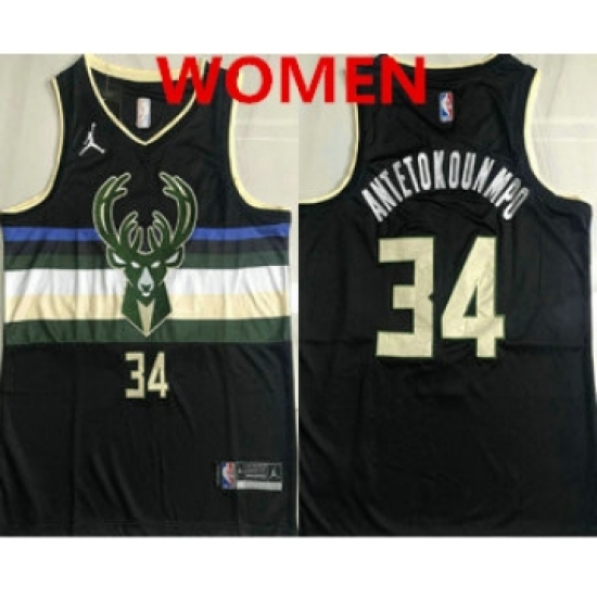 Women's Milwaukee Bucks #34 Giannis Antetokounmpo Black 2021 Brand Jordan AU Stitched Jersey
