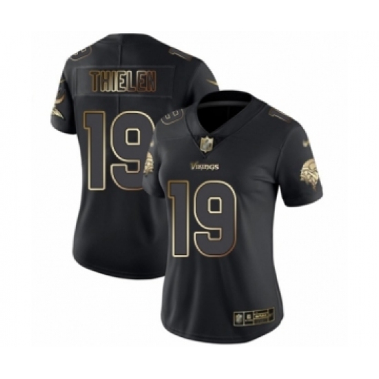>Women's Minnesota Vikings #19 Adam Thielen Black Gold Vapor Untouchable Limited Football Jersey