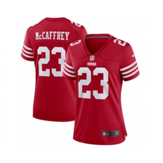 >Womens NFL San Francisco 49ers #23 Christian McCaffrey Red Stitched Game Jersey(Run Small)