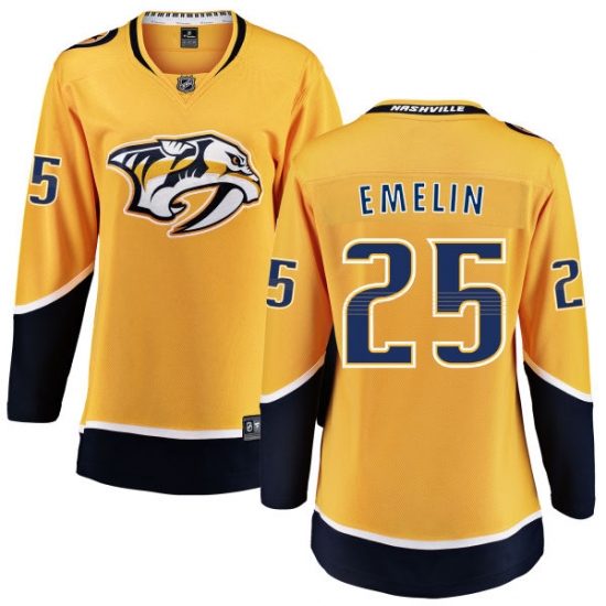 Home>NHL>Nashville Predators>Alexei Emelin>Women's Nashville Predators #25 Alexei Emelin Fanatics Branded Gold Home Breakaway NHL Jersey