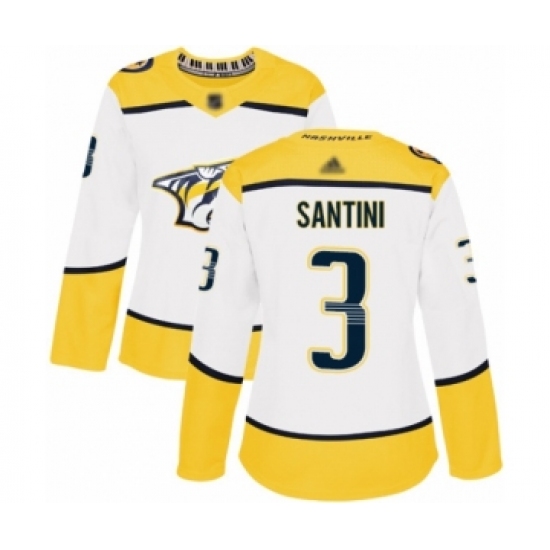 Women's Nashville Predators #3 Steven Santini Authentic White Away Hockey Jersey