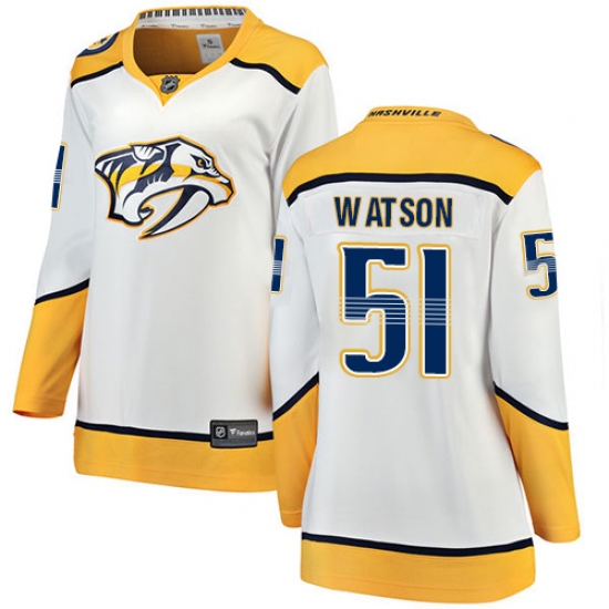 Women's Nashville Predators #51 Austin Watson Fanatics Branded White Away Breakaway NHL Jersey