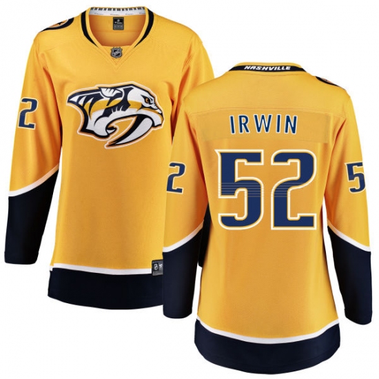 Home>NHL>Nashville Predators>Matt Irwin>Women's Nashville Predators #52 Matt Irwin Fanatics Branded Gold Home Breakaway NHL Jersey