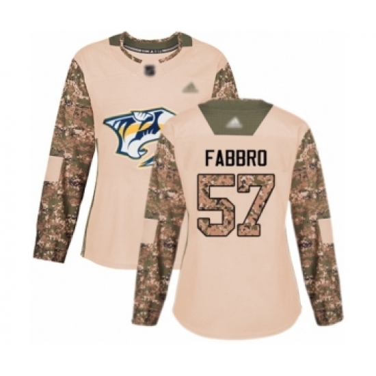 >Women's Nashville Predators #57 Dante Fabbro Authentic Camo Veterans Day Practice Hockey Jersey