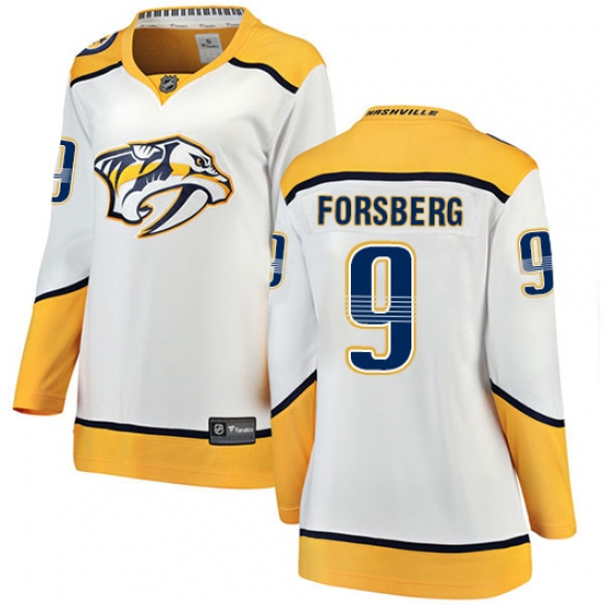 Home>NHL>Nashville Predators>Filip Forsberg>Women's Nashville Predators #9 Filip Forsberg Fanatics Branded White Away Breakaway NHL Jersey